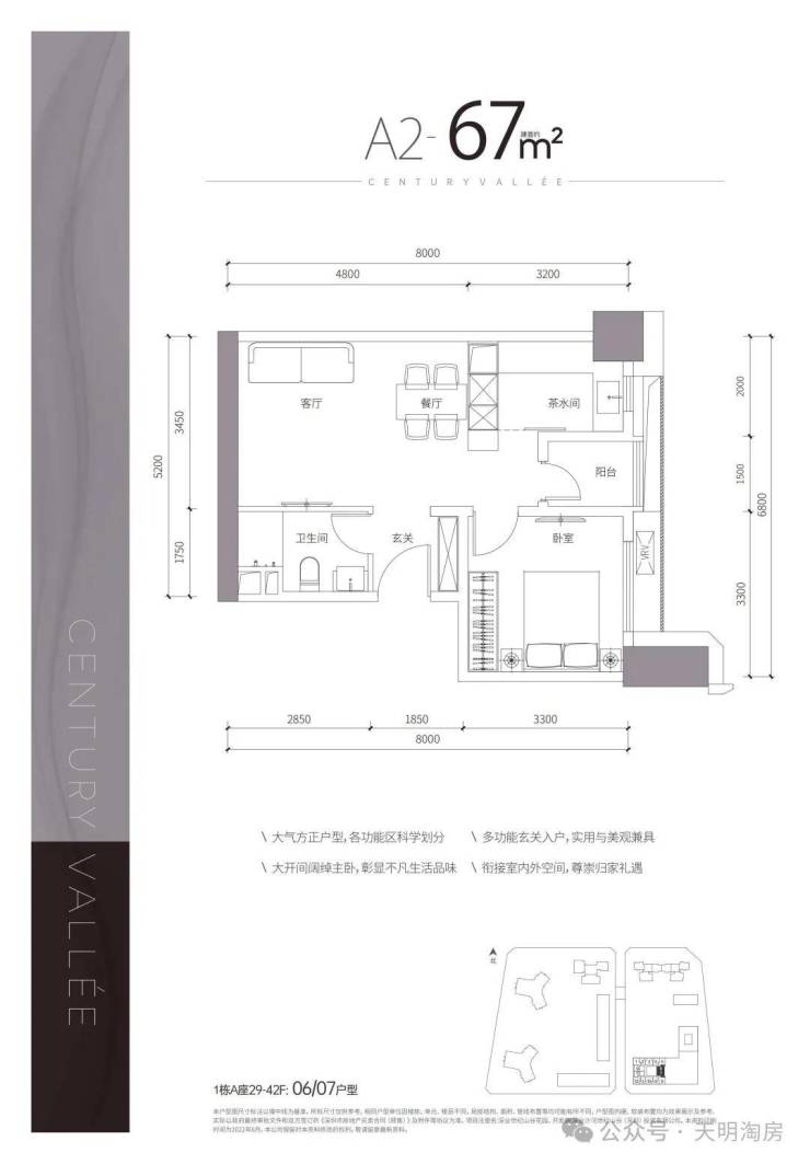 🎆 【产品】约67-87㎡1-2房,百米之上,天赋臻寓,70年产权,户户带阳台,拥有约3.3m超舒适层高,5梯14户,高定奢装,世纪山谷首发之选。