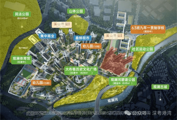 此外,项目还紧邻观澜体育中心(在建中),自带约2万㎡文化活动中心(含演艺厅、少年宫、图书馆;具体功能规划以政府最终落地为准),一河之隔观澜古墟,周边龙华四馆,观湖文化体育中心等文体配套环伺。
