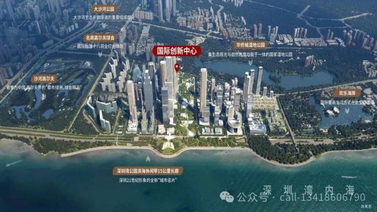 深圳湾内同时拥有海、湖、湿地、公园、高尔夫球场五大自然资源的生态复合区,荟萃国际商业、高奢酒店、人文艺术一城精粹。
