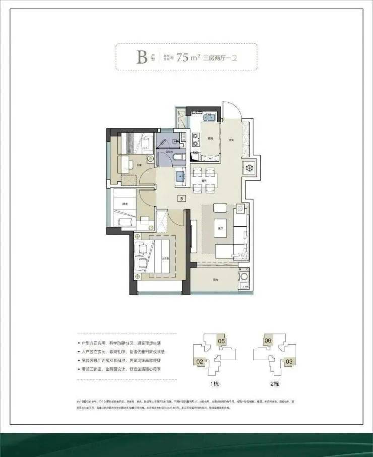 产品信息:建面约 75-95-120 ㎡ 3-4 房