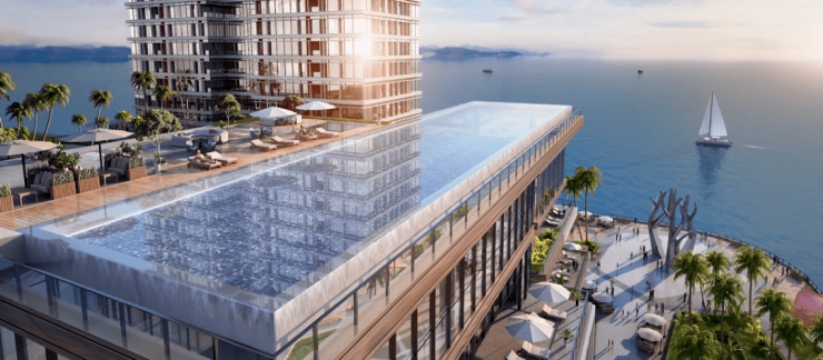 更让人惊喜的是,小区内还有一个悬空无边泳池!夜幕降临,看着落日与城市灯光交错,在这个无边际泳池畅游,享受云端空间,惬意无比!