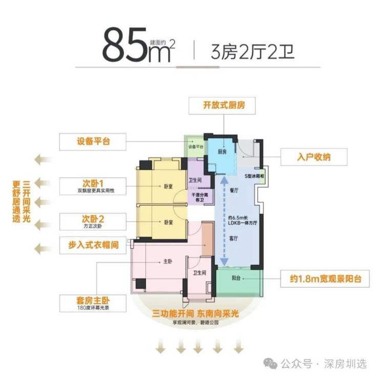 大主卧270度环幕采光,3面环景通透舒适