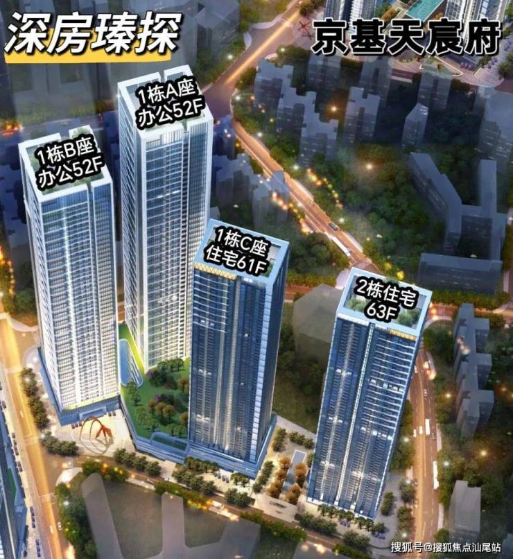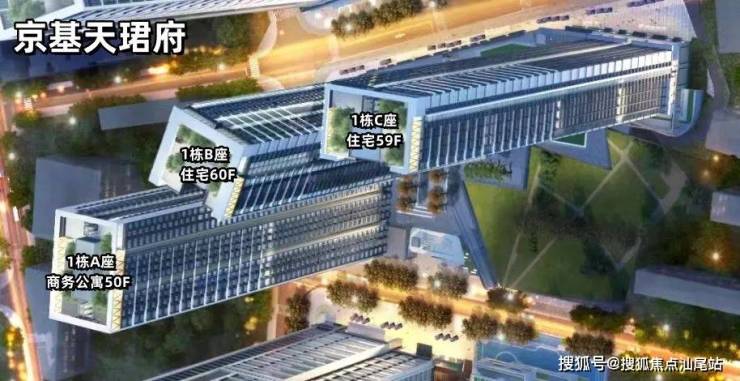京基天珺府:总占地面积约1.2万㎡,总建筑面积约15.3万㎡,计容建筑面积约11.93万㎡,容积率9.9,绿化率36%,共由2栋59-60F的超高层住宅+1栋公寓组成,其中1栋A座商务公寓50F,1栋B座商品房+人才住房和保障性住房60F,1栋C座人才住房和保障性住房59F。