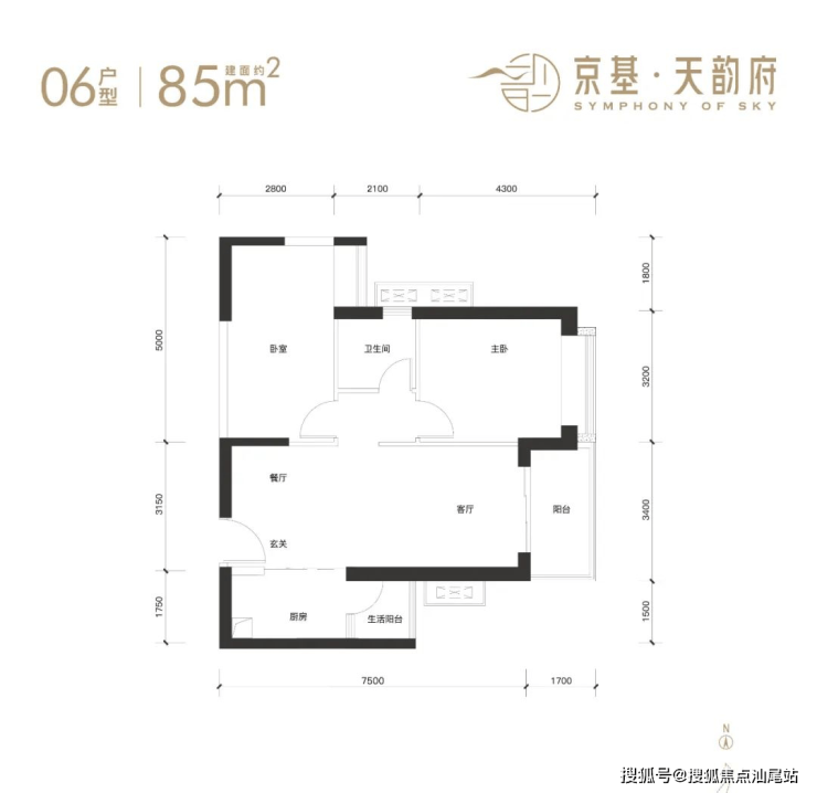 85㎡的2房2厅1卫(06户型),设计的竖厅格局,餐客厅一体化,客厅3.15米开间,2个卧室分别是3.2/2.8米的宽度,L型厨房,带一个生活阳台,得房率81.47%(包含赠送),阳台3.4米长,进深1.7米,主卧阳台都是朝东向,高层可看深圳水库景观。