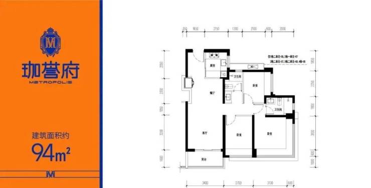 | 约94㎡(横厅)三房两厅两卫
