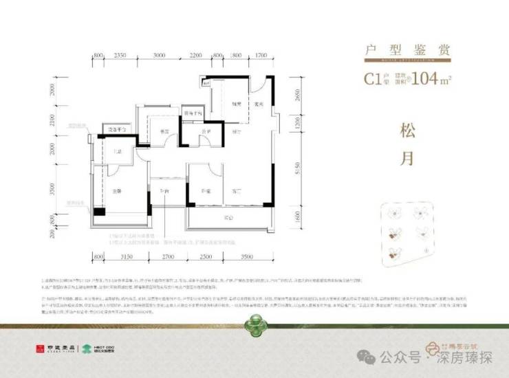 104㎡的4房2厅2卫,C1-C2户型,设计的是经典竖厅格局,进门入户玄关,客厅3.5米开间,LDKB一体化,S墙设计预留冰箱卡槽位,动静分区,四开间朝南,分别做到了主卧17.98㎡/次卧8.37㎡/次卧8.1m²/次卧7.75㎡(包含墙体飘窗),L型厨房,公卫干湿分离带1个约2m²的设备平台,得房率约79.2%(不含赠送),客厅连接次卧出9.6m²的观景大阳台,东南或西南朝向。套内面积82.58m²+赠送面积23.86m²=实用面积106.44m²,加上赠送后得房率约102.04%。