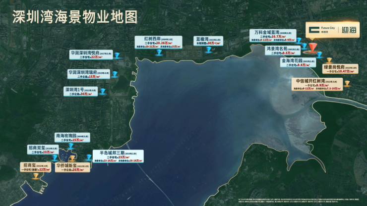 一二期建面约126万㎡全系业态滨海综合体,涵盖超甲级写字楼、高端酒店、精品公寓、海幕住宅、购物中心、公园式街区多种业态。目前一期住宅公寓已售罄入伙,写字楼已招商运营(入驻企业包括:平安产险、海通证券、浙商银行、VFS Global等国内外知名企业),城际酒店Intercity Hotel已开业,一期约8万㎡商业已开业,40%的品牌都是首次进入深圳或者华南地区,华南区首家茑屋书店、寰映IMAX未来概念店,华南区首家teamLab未来游乐园等。