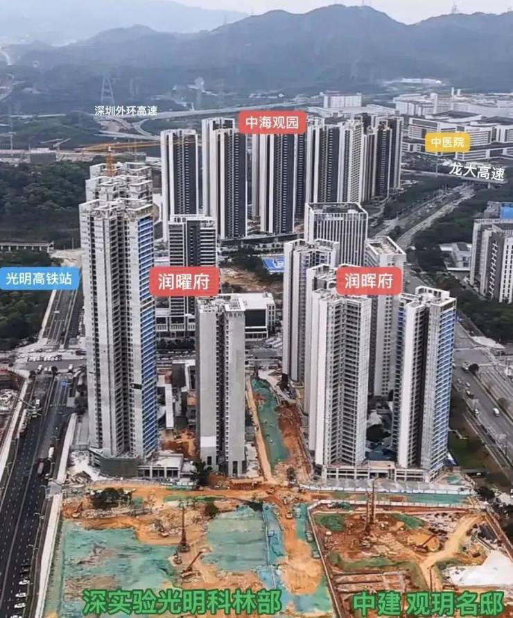 中建观玥名邸,位于光明区凤凰街道光侨路与观光路交汇处东南侧,地处光明科学城核心区与凤凰城板块交汇处,是光明高铁站板块最后一块住宅用地。作为光明科学城"一心两区"战略布局中的关键节点,项目紧邻区政府、文化艺术中心等行政文化配套,2公里范围内覆盖蓝鲸世界、万达广场等成熟商圈,坐享"15分钟社区生活圈"便利。依托光明科学城建设世界级原始创新高地的规划,项目所在区域将受益于大量高端科学人才涌入带来的区域价值提升,同时享有"北林、中城、南谷"差异化城市风貌中的"乐活城"特质,兼具科技感与宜居性。