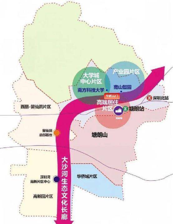深圳六大总部基地之一,与西丽湖国际科教城联动,形成“产学研用”一体化生态。已入驻包括大疆创新、传音控股、天珑移动、乐普医疗、优必选、深信服等头部企业。