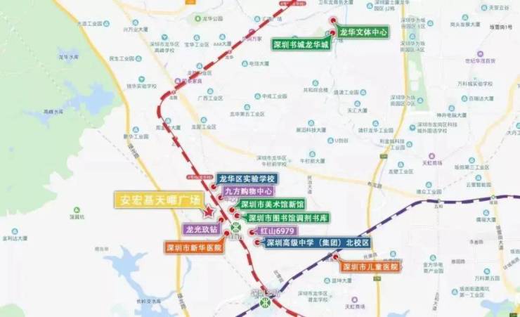 项目地址:深圳龙华红山·天虹商场对面,距离地铁4/6号线红山站约450米。