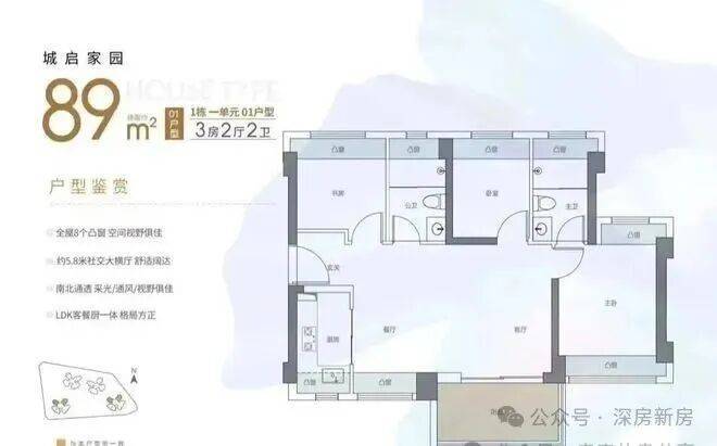 •主推产品:约89㎡三房两卫、约120㎡四房两卫