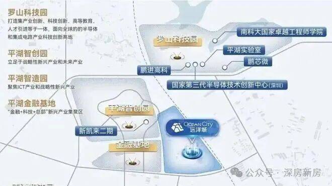 平湖北部新城已建成罗山科技园、平湖智造园、平湖智创园,平湖金融基地,重点发展芯片光刻机、半导体、ICT等新兴产业,打造面向全球的半导体与集成电路产业科技创新高地。