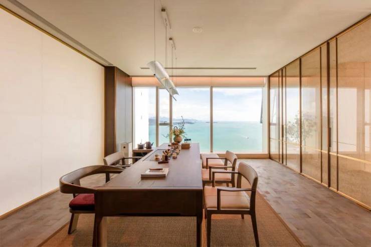 于最好的观景位设置茶室,以艺术家定制云屏为背景墙,甄选手工茶器,每一处陈设细节都彰显私属尊享,演绎传统文化的含蓄精神内核。