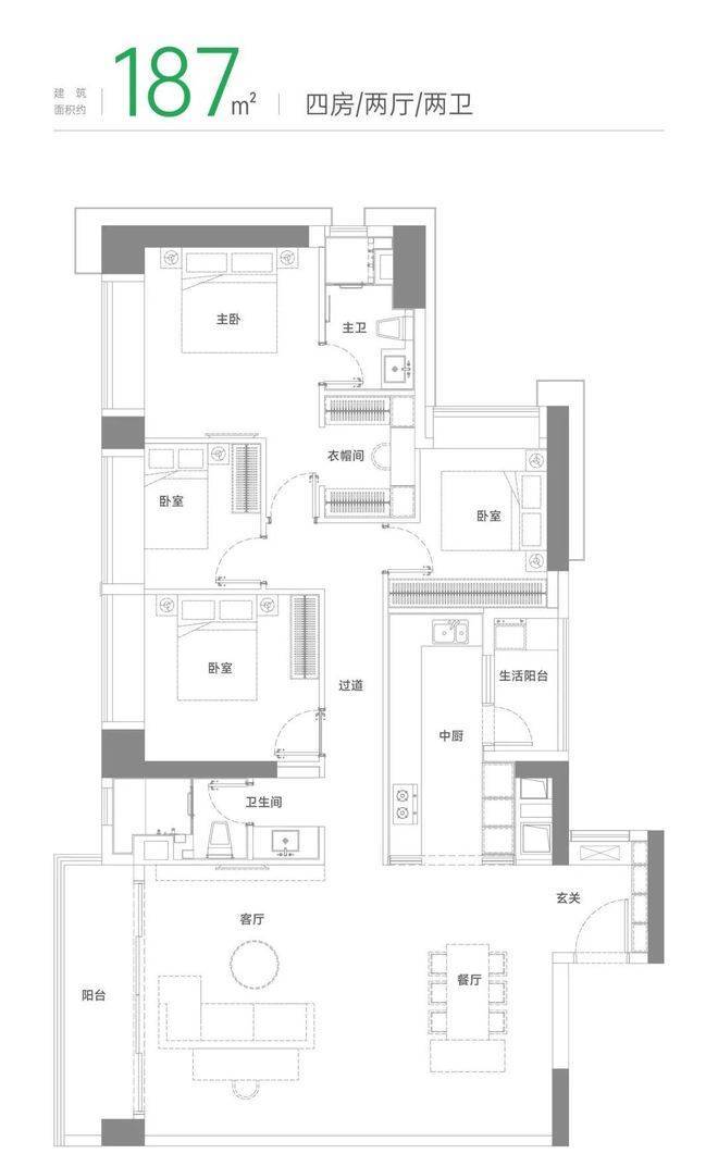 【建面约187㎡ 四 房 两 卫】