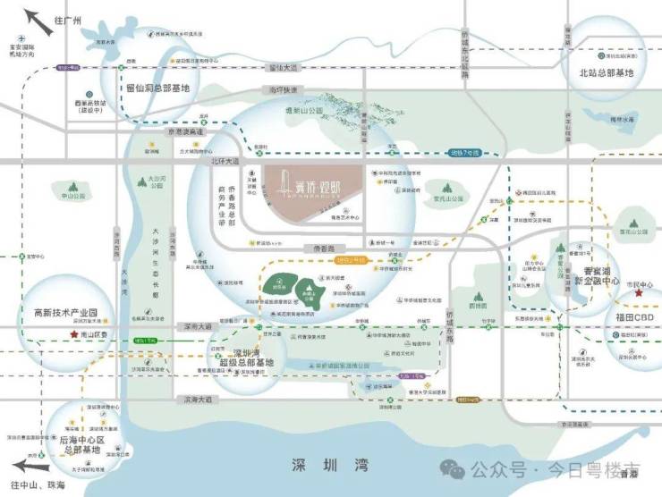 快捷交通路网,北环大道/南坪快速/侨香路/京港澳高速,20-30分钟到福田CBD、深圳北站、皇岗/福田/深圳湾三大口岸、宝安机场等,城芯而居,超享生活。
