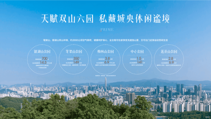 坐拥约2000公顷空气氧吧,笔架山、银湖山双山环绕,呵护健康身心,业主既可在家享受无遮挡山景,又可出门近享运动悠闲生活。