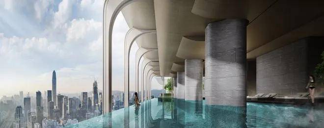 在这个会客厅,可以正面饱览银湖山、笔架山的绿意葱茏,景观无敌,堪称“福田露台”。
