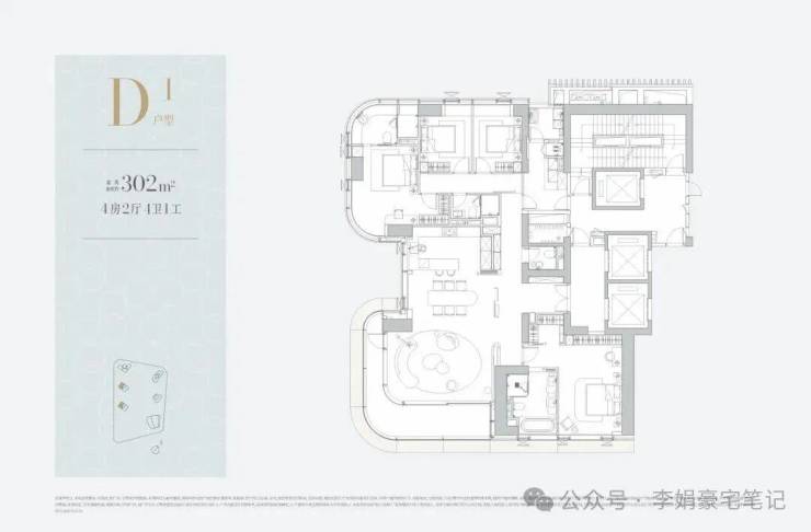 D栋302㎡户型特点: