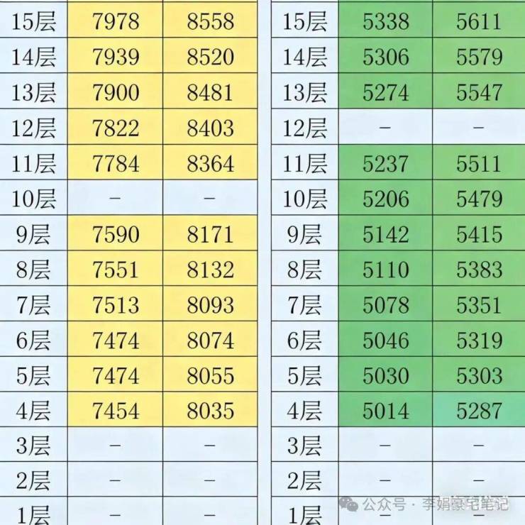 从E栋302㎡的销售情况看,该户型以20层为价格分界线: