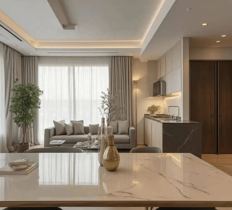 而高达3.3米的标准层高,更是远超市场同类产品。这绝非简单的数字增加,而是对居住空间感的极致追求。相较于普通住宅压抑的层高,3.3米的奢适尺度,让室内采光与通风效果达到最佳,空气流通更为顺畅。无论是精心设计的吊顶、华丽的水晶灯饰,还是定制化的大型家具摆放,都能从容应对,毫无局促之感。它赋予空间更多的呼吸感与可能性,让每一位居者都能在这片天地中,感受到前所未有的从容与自在,生活的气度与格调不彰自显。这种空间的奢阔,是对居者身份的无声致敬,更是对高品质生活方式的完美诠释。