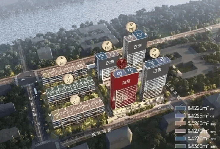 【主力户型】:高层建筑面积约225㎡、270㎡;叠墅主力建筑面积约260㎡、360㎡