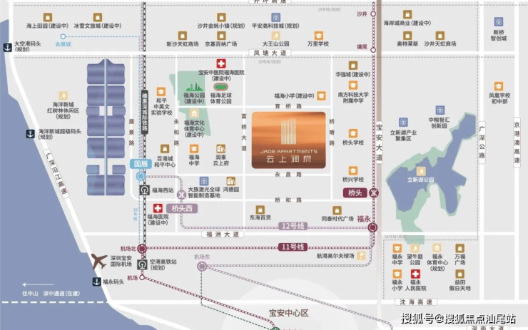 同时项目本身有规划9班制幼儿园,一街之隔就是深圳市福海中学,约1公里范围内还有九年一贯制桥头学校、24班福海小学(建设中)等多所中小学。基本就是家门口读书,上学无忧。(相关入学政策,以政府及学校的规定为准)
