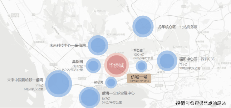 深圳自东往西发展,福田中心区、车公庙、华侨城、超总湾基地、后海、高新园,深圳所有的核心商务区都紧紧围绕着侨城一号,其主城中央地位不言而喻。