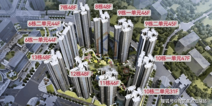项目共由10栋总高31-48F住宅组成,其中6栋1/2单元住宅44F,7栋/8栋住宅48F,9栋1单元住宅46F,9栋2单元住宅45F,10栋1单元住宅47F,10栋2单元住宅31F,11栋住宅46F,12栋/13栋住宅48F。