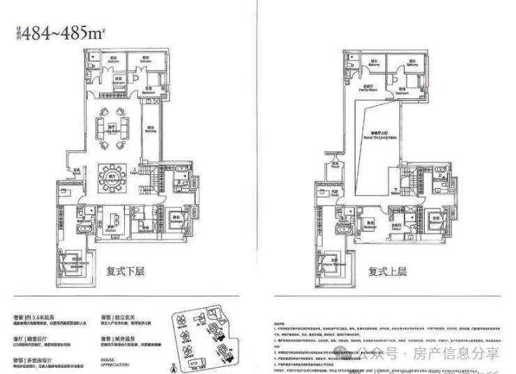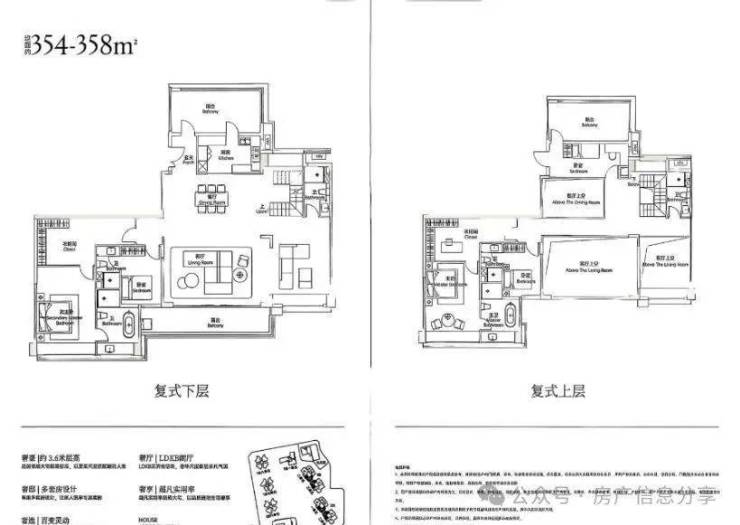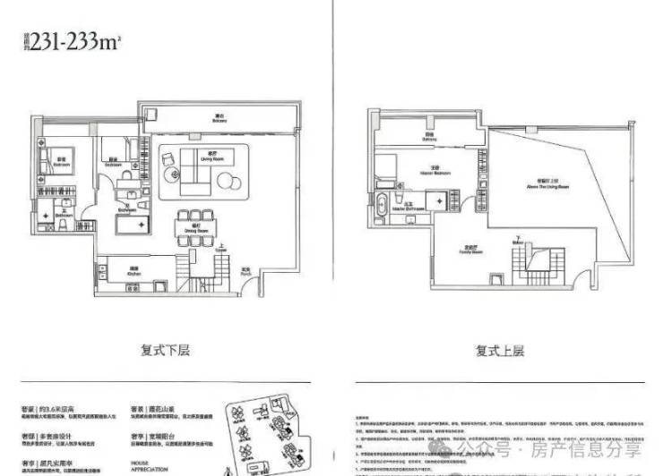 高区复式还有231-233㎡,354-358㎡,484-485㎡三个户型。