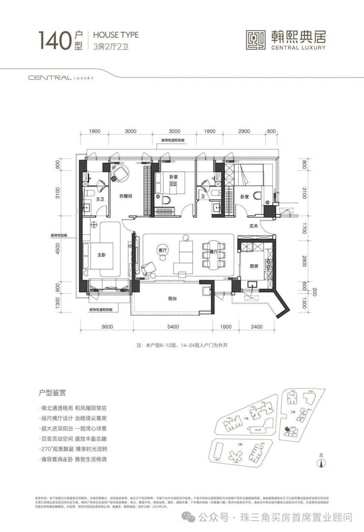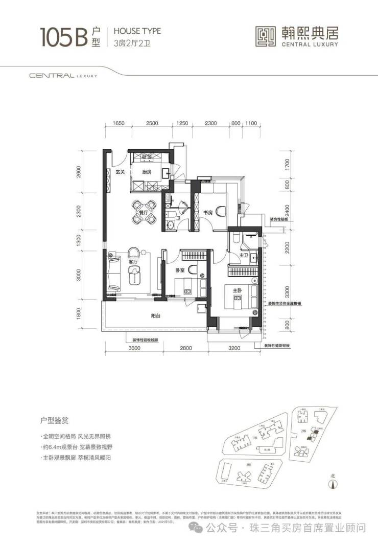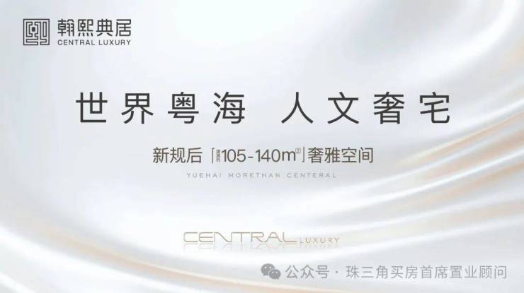 奢阔空间丨中心极境 礼献粤海 翰熙典居,粤海十年之后再上新,全新奢居综合体礼献峯层。可售主力户型新规后建面约105-140㎡奢雅空间,全明方正户型将空间奢阔感与生活舒适度完美契合。明星户型超6米阳台开间,全维度巨幕景观视野,尽揽湾心万千风景。