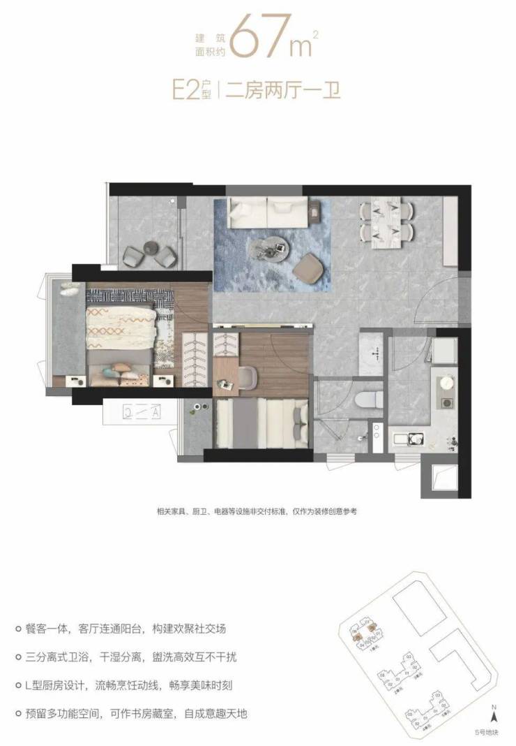 E2户型67㎡二房两厅一卫