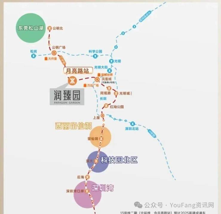 交通直线距离约600m到达地铁13号线[月亮路站](建设中),1站凤凰城,9站到南山,2025年将推动13号线二期(北延)建成通车