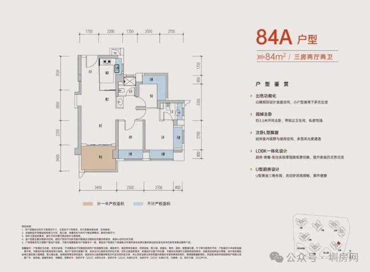 竖厅设计动静分区,约3.5米开间主卧,带独立卫生间,书房L型飘窗,多面采光更通透,U型厨房布局,流线顺畅。
