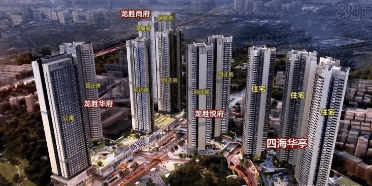 四海华亭,项目前身为“龙胜旧村城市更新单元”,共分5个地块建设,分别是龙胜华府,龙胜尚府,龙胜悦府,龙胜云坊,四海华亭,另外配建1所9年制学校,如今的龙华中学弘毅校区(龙胜学校),项目总占地面积约5.45万㎡,总建筑面积约56万㎡。