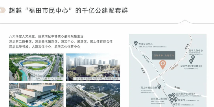 休闲配套:周边涵盖深圳美术馆新馆(试运行)与深圳市第二图书馆(已开放)两大深圳新十大文化地标;近享深圳文化馆新馆(在建中)、简上体育综合体、深圳书城(龙华城)等市级文体项目,打造10分钟文体服务圈,构建对标世界的艺术文化生活区。
