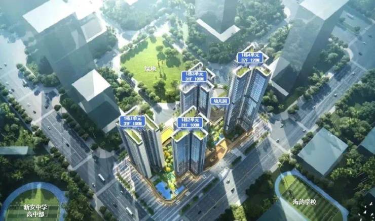 教育上,项目自带幼儿园,北面一路之隔是海韵学校、东面为新安中学(集团)高中部。