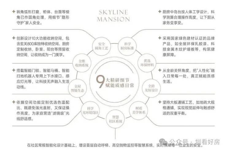 颐安集团秉承精工标准,全屋甄选一线品牌建材电器,全屋金属踢脚线设计,实用性与美观度兼顾,同时配备全屋收纳储物系统、智能电子门锁系统和多联机中央空调系统,还为深圳天气定制防水防漏工艺,匠心细节成就拎包入住的品质生活。