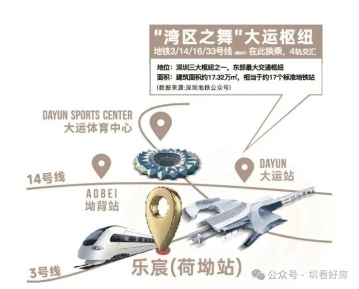 乐宸择址大运新城,以擎动东部的时代坐标之姿,立序湾东智芯。大运新城又定义为大运深港国际科教城,与前海、深圳湾、香蜜湖等区域并称深圳六大城市新客厅,汇聚东部最大综合交通枢纽。区域引进NBA中国赛、当红明星演唱会,深圳国际大学城落户,带动高能级配套激增,造就从容进阶的生活质感。