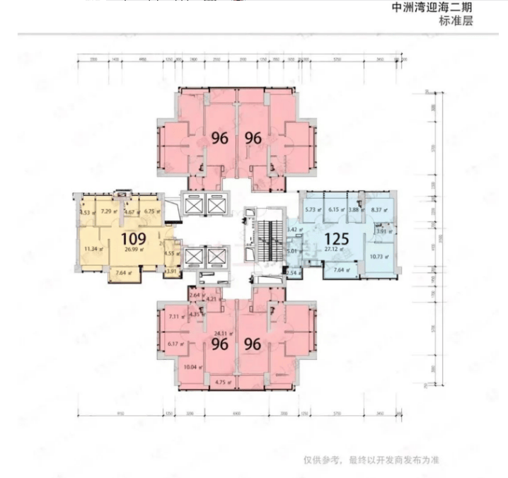【户型面积】约96-109-125㎡中心3-4房