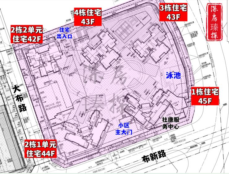 这次要推售的地块是金光华溪山禾玺御府,总占地面积约1.77万㎡,总建筑面积17.31万㎡,计容建筑面积12.41万㎡,容积率7,绿化率40.01%,共由5栋总高42-45层的住宅组成,其中1栋住宅45F,2栋1单元住宅44F,2栋2单元住宅42F,3/4栋住宅43F。