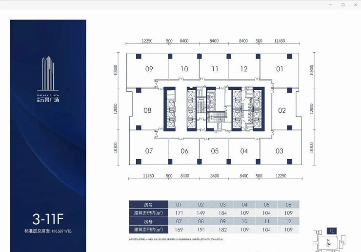 【在售写字楼面积】103-250㎡