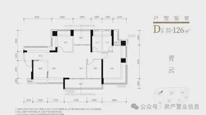 126㎡的4房2厅2卫,设计的是横厅南北通透格局,进门赠送约4.2㎡的入户玄关,客餐厅6.35米开间,4个卧室分别做到了主卧21.37㎡/次卧10.22㎡/次卧10.19㎡/次卧7.39㎡(实测面积,去掉墙体),主卧+1个次卧270°飘窗,客厅连接次卧出6.3米长大阳台,L型厨房,得房率约103.5%(包含赠送),阳台主朝东南向。