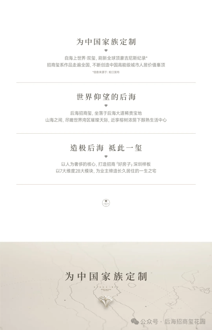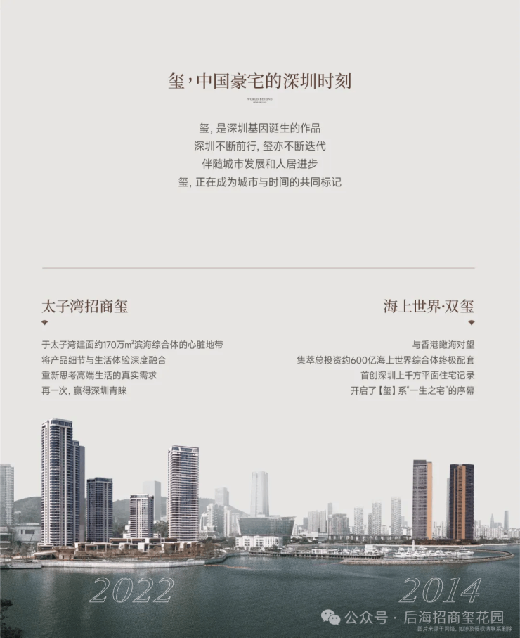 主打T2/T3楼型,户均218㎡,全大户型纯粹社区,将打造深圳湾一线豪宅。作为玺系的全新产品,后海招商玺是招商继“5000万蹲”深圳双玺和“2024年交付天花板”太子湾招商玺之后,再次带来的玺系新作。