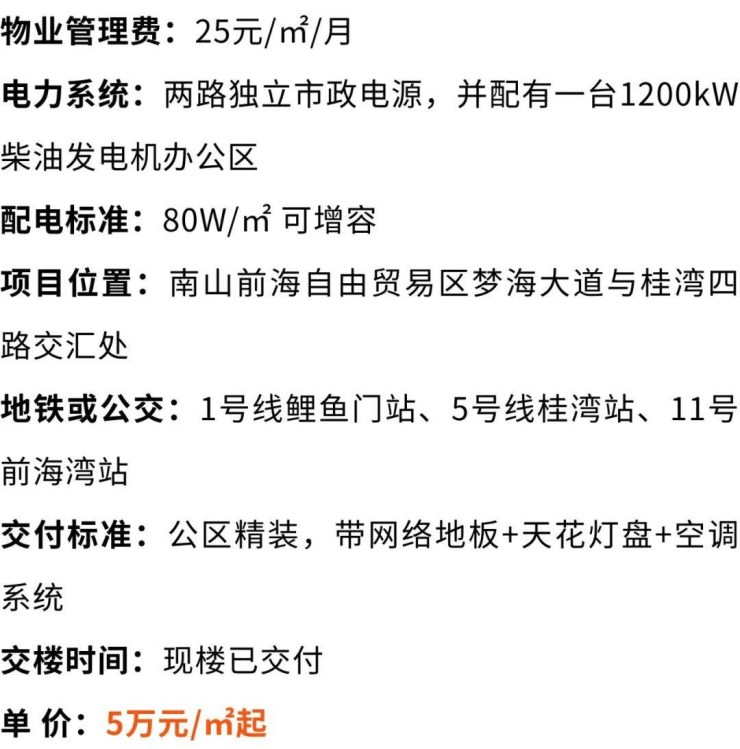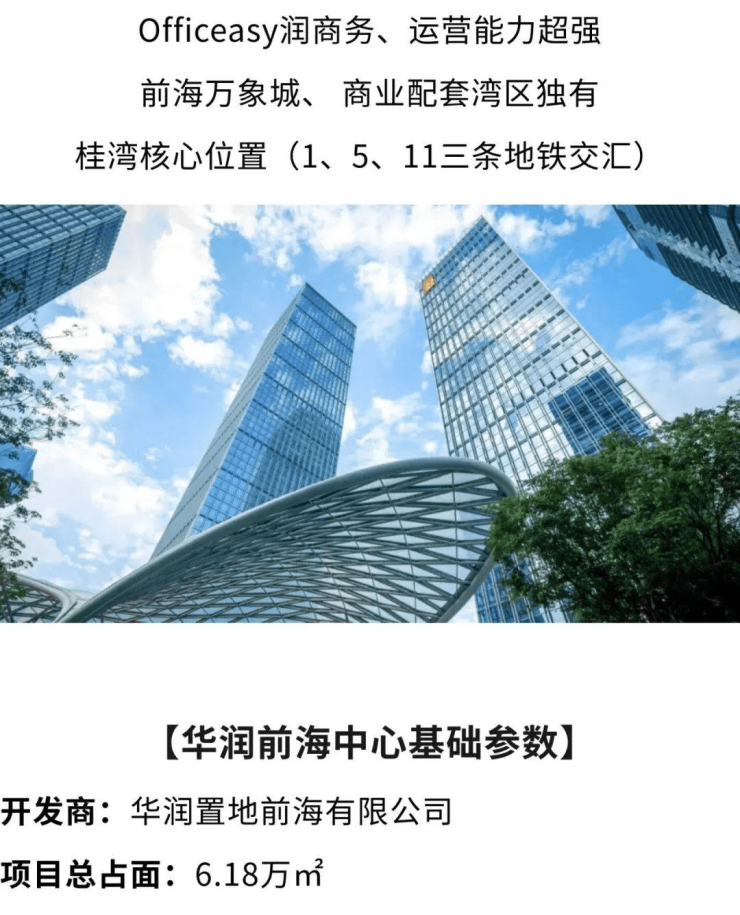项目地址:前海深港现代服务业合作区桂湾商务中心片区二单元02街坊(地铁1号线鲤鱼门出口100m)