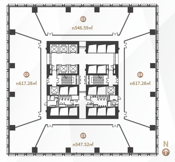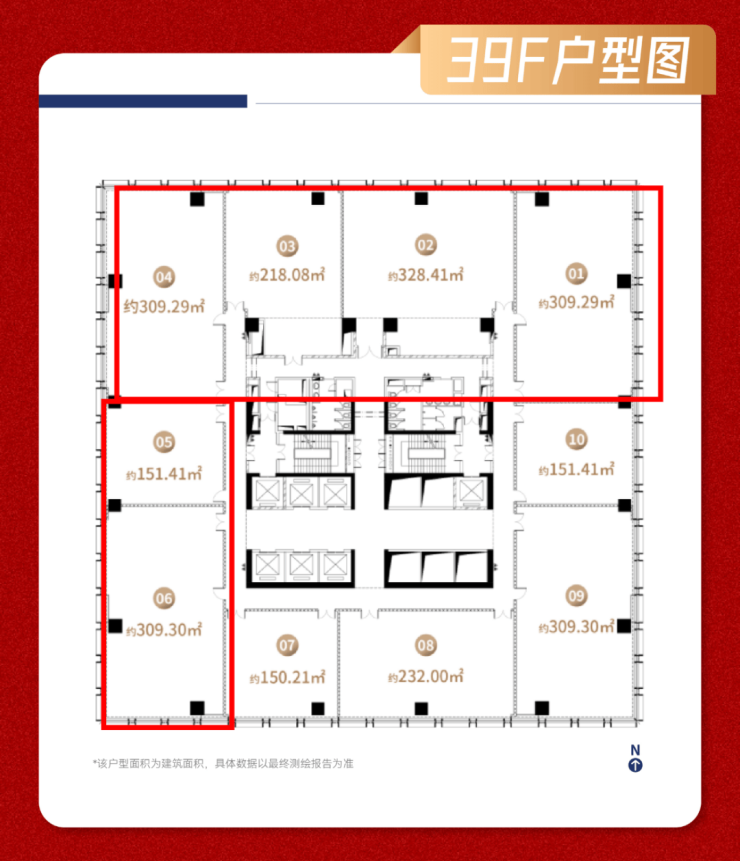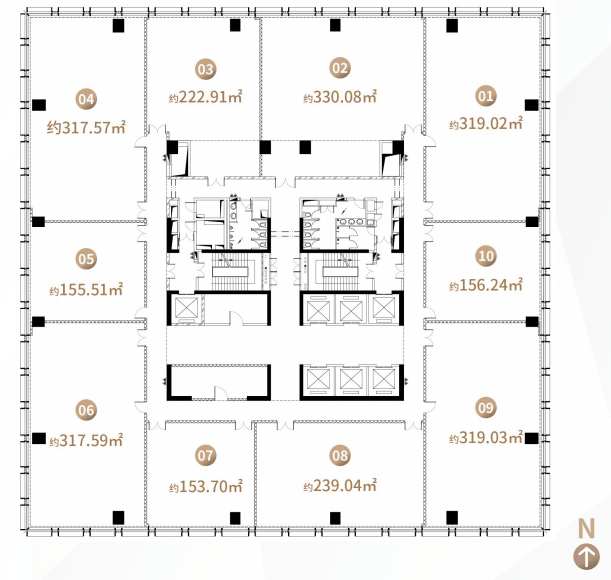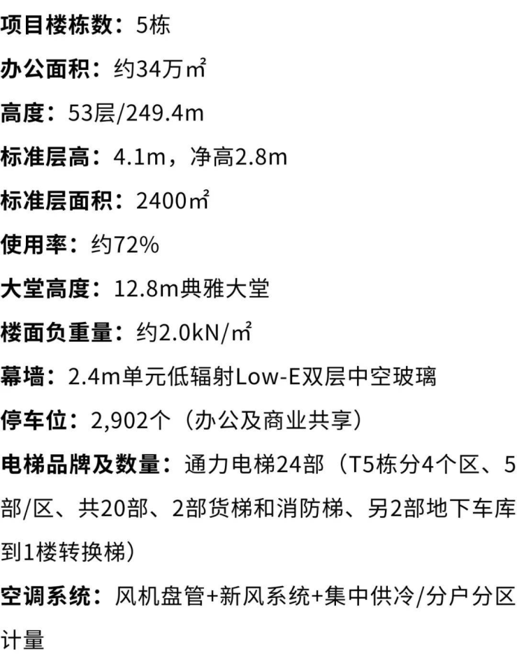 建筑层高:T5栋53层(约249.4米)约580-2400㎡甲级写字楼