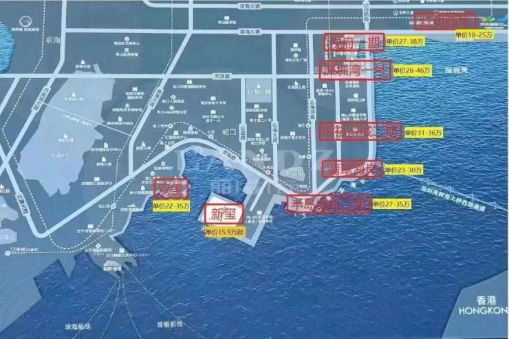 东侧为半岛城邦,西侧与招商双玺隔海相望,北侧为内湾海域,南侧则是一线永久无遮挡的深圳湾无敌海景。