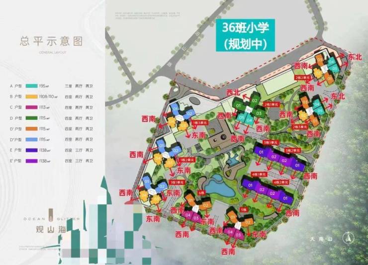 「观山海家园」这座建面约4.2万㎡的度假式社区,整体依山就势,南北朝向建筑布局,创造约8米高差台地式园林,最大约46米楼间距,尽可能保障了户户视野错落开阔,尽享山景、城景。