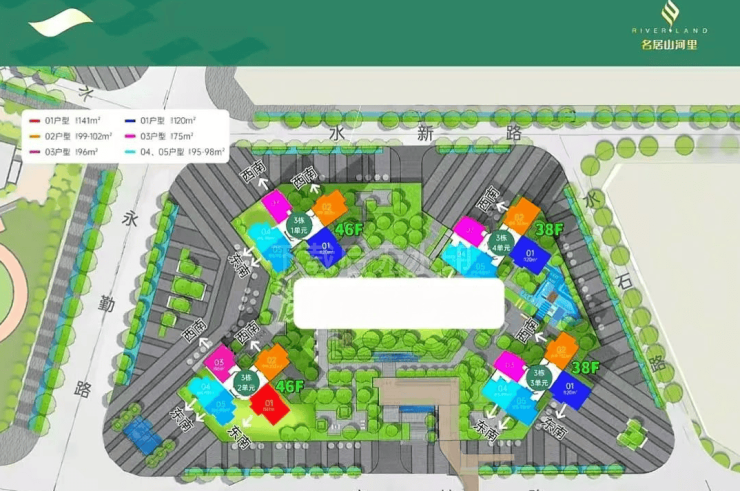 首推的01地块(一期):总占地面积约1.56万㎡,总建筑面积约11.7万㎡,计容建筑面积约9.05万㎡,容积率5.83,绿化率40%,共由4栋总高38-46F的住宅组成,其中3栋1/2单元住宅46F,3栋3/4单元住宅38F。