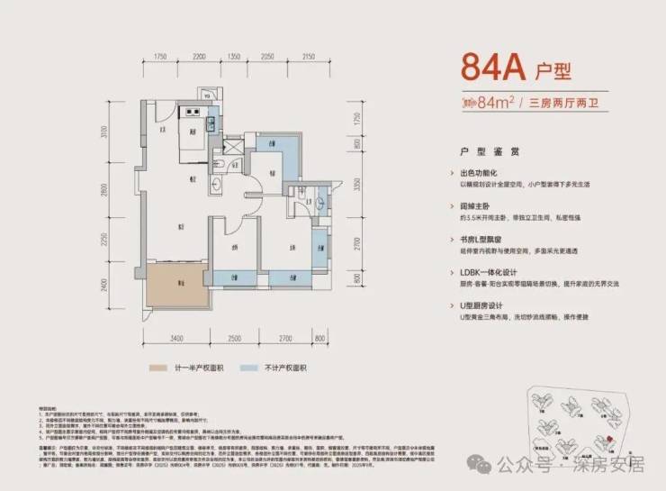 89㎡的3房2厅2卫E户型: