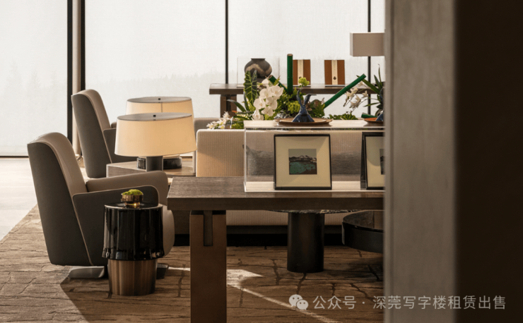 区别于传统的写字楼大堂,更注重企业主的待客之道,和商务的高效性,将呈现人文生态、多元化、有温度的新型辦公,大堂和商务会客厅巧妙结合在一个空间中,营造出商务、舒适的感觉。